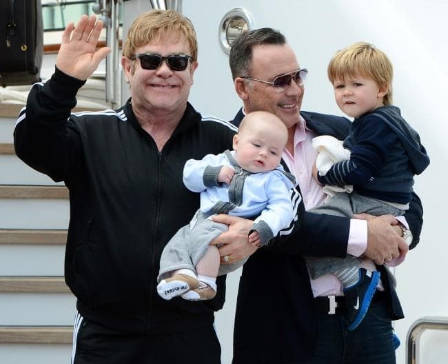 Elton john and husband david furnish are raising two boys, zachary and elijah, who were born to an anonymous surogate in the us.