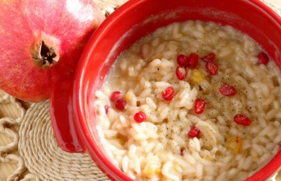 Ricette Melograno Risotto: La preparazione non presenta molte difficoltà, ma occorre prestare attenzione alla spremitura dei chicchi di melograno.